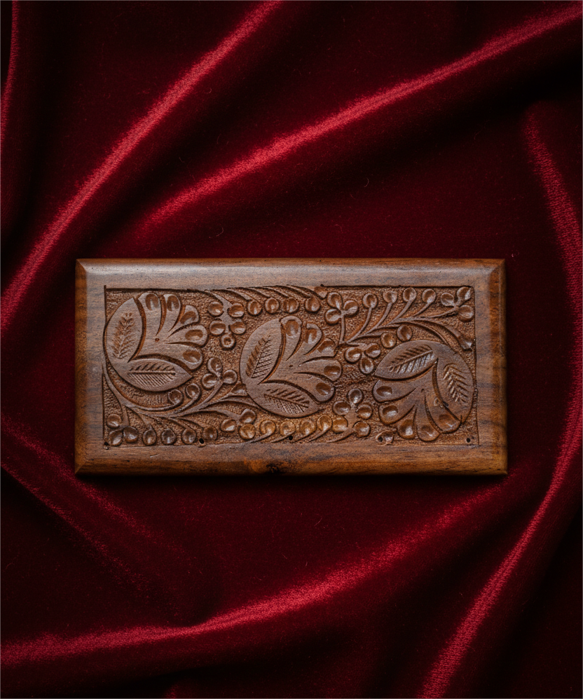This wall-mounted key holder is crafted by skilled artisans in Pakistan, reflecting generations of woodworking expertise. Each key holder is individually hand-carved, making every piece unique. The smooth, refined finish highlights the natural texture of the wood, ensuring that no two pieces are the same. Its designer key holder style brings a blend of old-world craftsmanship and modern functionality.